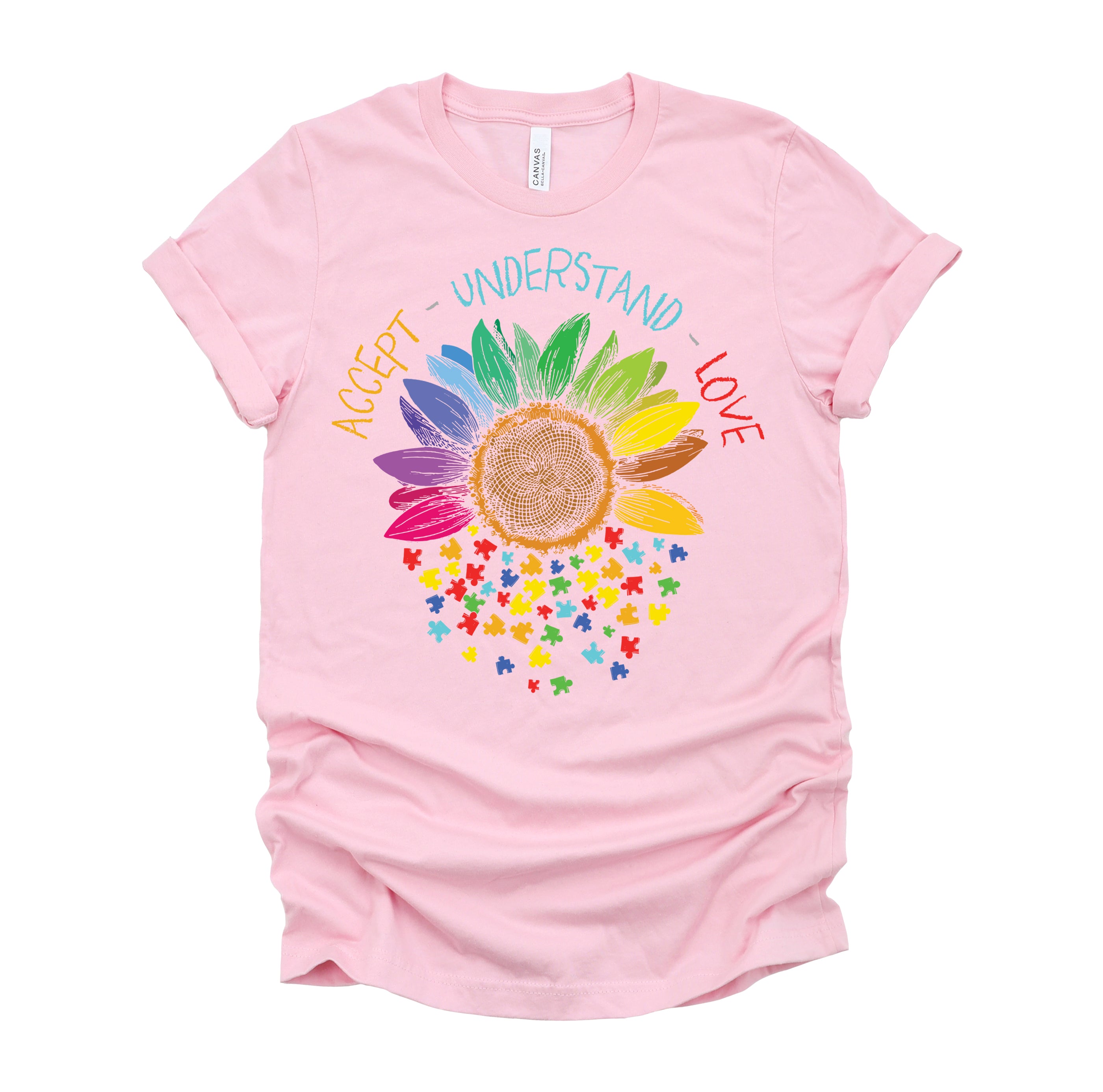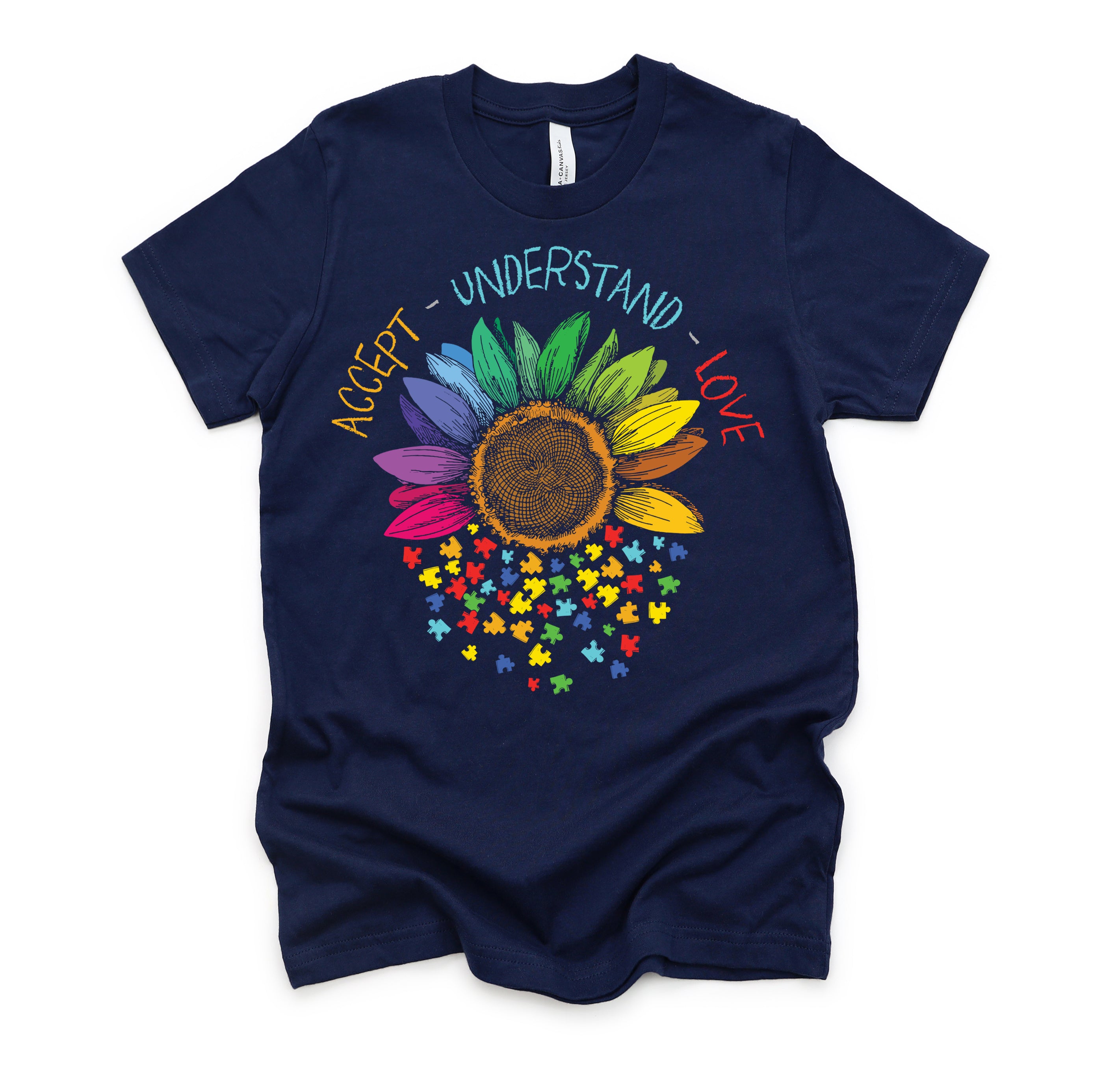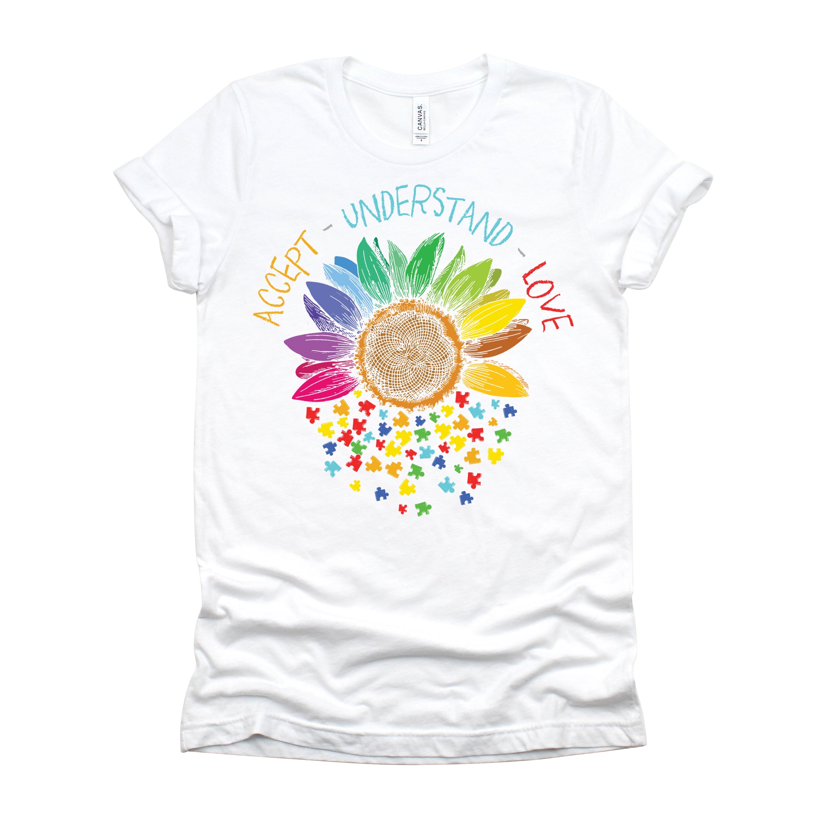 Autism Awareness Accept Understand Love ASD Rainbow Flower T-Shirt