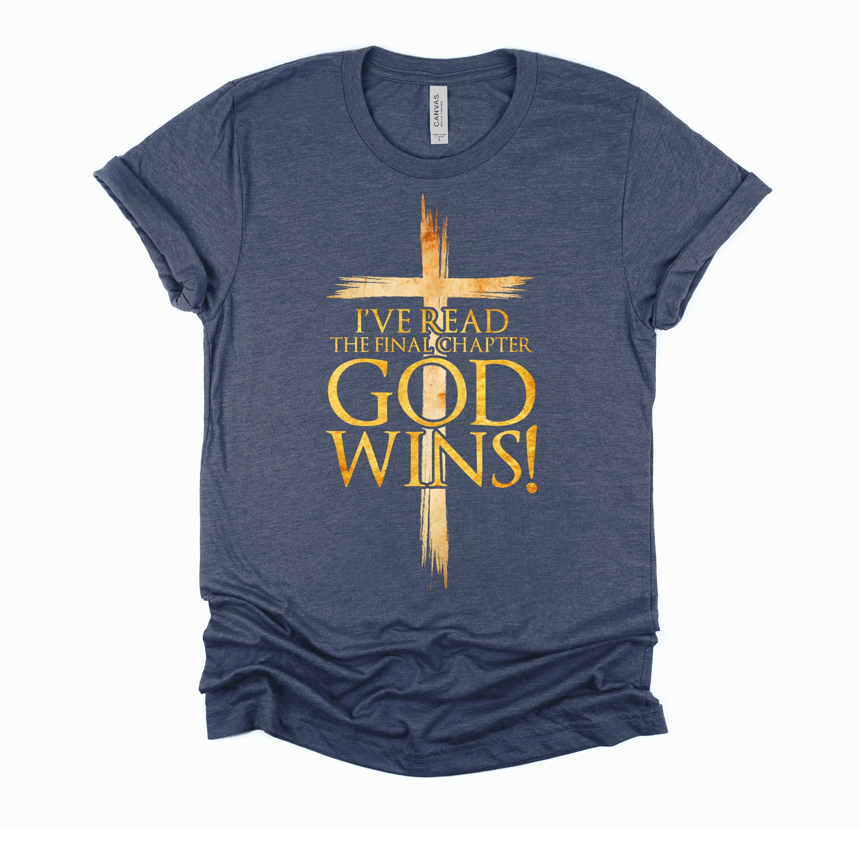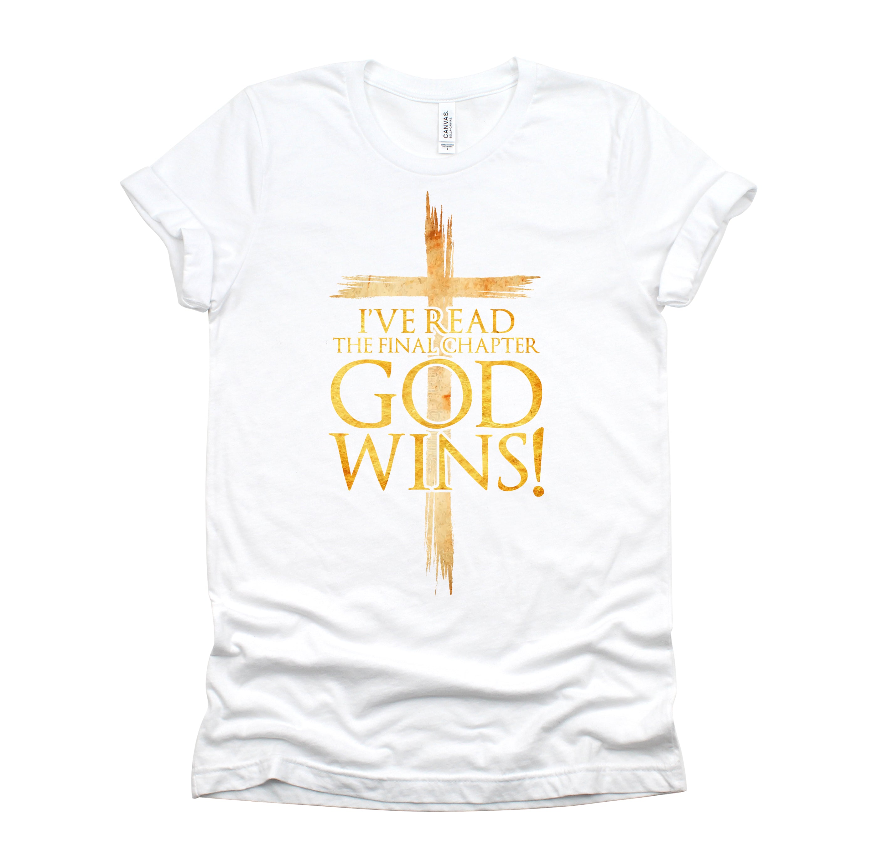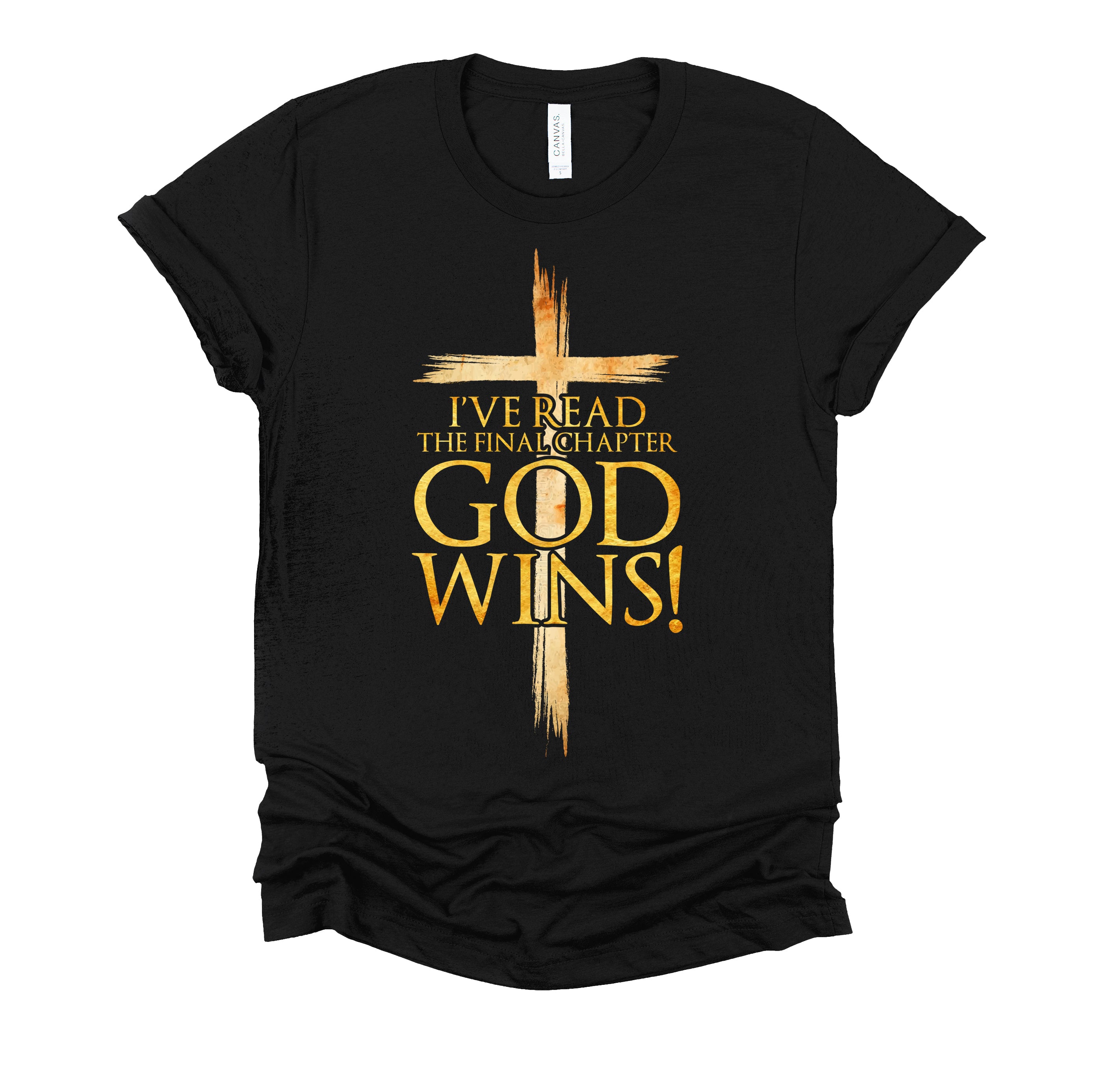 - Embrace your Christian faith with our "I've Read the Final Chapter, God Wins" design. This powerful statement and cross symbolize unwavering belief and the victory of faith. Wear it proudly as a reminder of strength and reassurance.